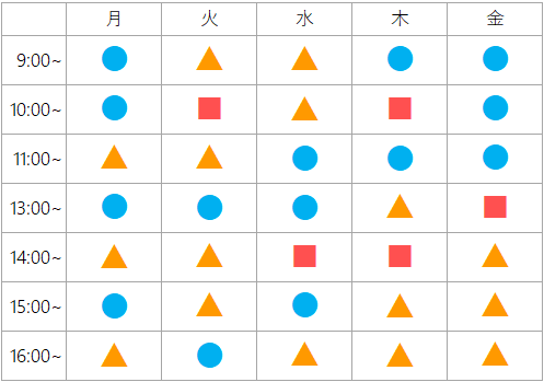 ※過去のデータを元に作成されているため、「●」の表記時に混雑している場合もございます。