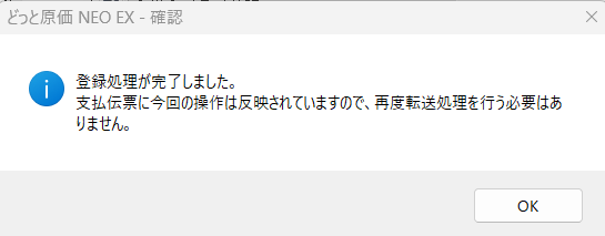 ※作成済みの支払伝票を上書き更新しますので、再度伝票転送する必要はありません。