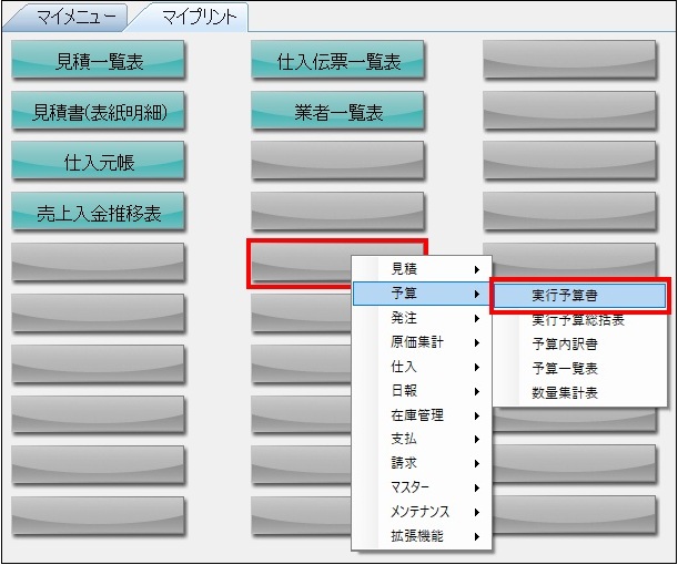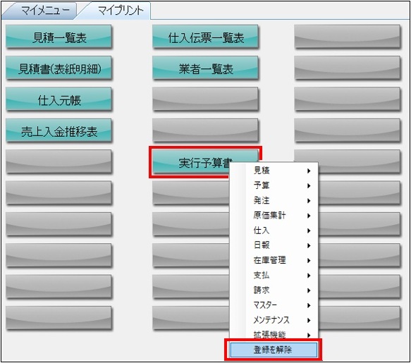 よく使用する帳票を、マイプリント画面でボタン形式にして一覧で表示する機能です。表示させたい部分で右クリックを行うと、画像のように選択項目が出てきます。
