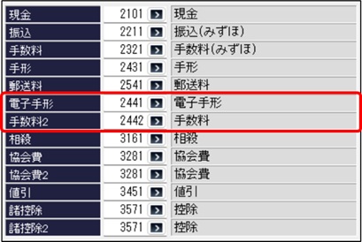 業者登録-会計情報の「電子手形」「手数料2」の要素内訳を設定してから、再度支払伝票転送をやり直してください。