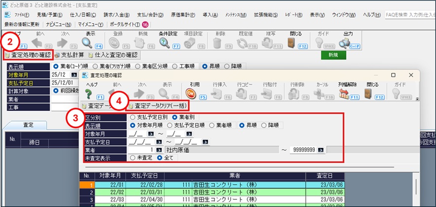 ①「支払管理」-「支払査定」を開きます。
