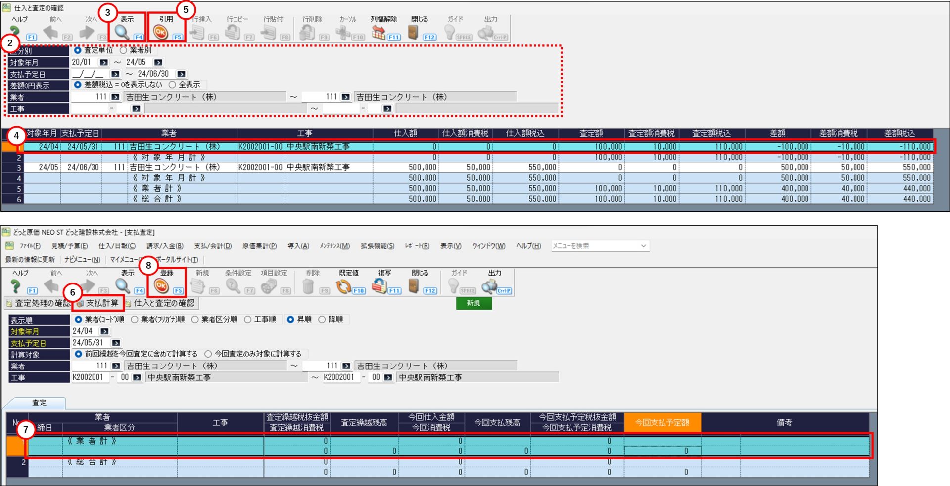 対象年月:「どっと原価シリーズにて支払査定を使い始めた時期」~「今回計算したい対象年月」