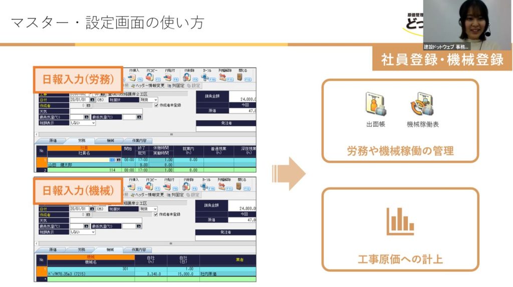 オンラインサロンの講師は、建設ドットウェブの経験豊富なサポートセンタースタッフが担当しています。実際の画面イメージを使用しながら説明するため、どっと原価シリーズを実際に操作しながらオンラインサロンへ参加するとより理解が深まりそうです。